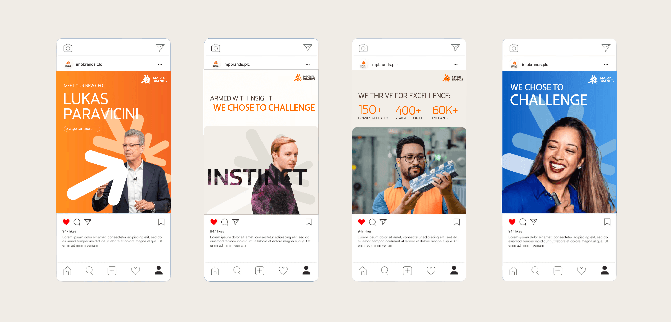 Lead with the impact - Tasked with bringing consistency to Imperial Brands' entire visual language -delivering a new brand guide, social media templates, presentation templates, dynamic logo system, and interior design elements across a live, multi-market rollout.